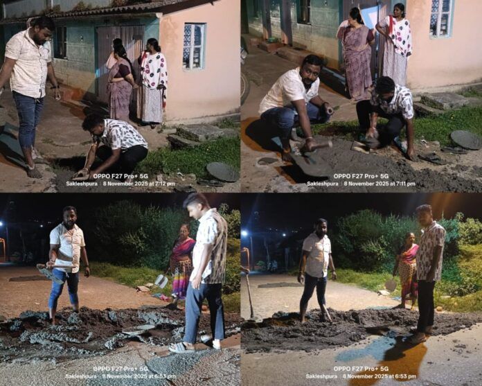 ಸಕಲೇಶಪುರ : ಪಟ್ಟಣದ ಪುರಸಭೆ ವ್ಯಾಪ್ತಿಯ ಕುಶಾಲನಗರದ 8ನೇ ವಾರ್ಡಿನಲ್ಲಿ ದೀರ್ಘಕಾಲದಿಂದ ಗುಂಡಿಗಳಿಂದ ಬಳಲುತ್ತಿದ್ದ ರಸ್ತೆಯನ್ನು ಸ್ಥಳೀಯ ನಿವಾಸಿಗಳು ಶಾಸಕರ ಸಹಕಾರದೊಂದಿಗೆ ತಾವೇ ಸರಿಪಡಿಸುವ ಮೂಲಕ ಮಾದರಿಯಾಗಿದ್ದಾರೆ.